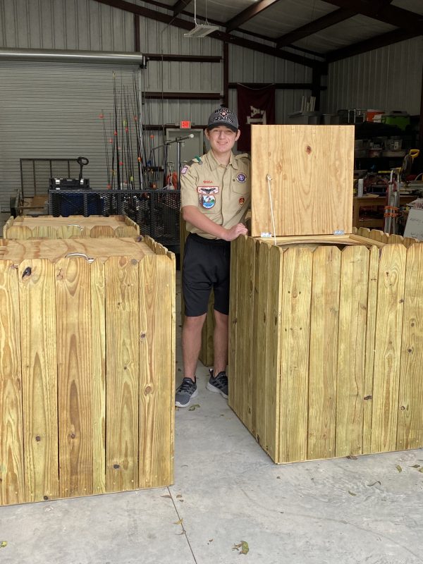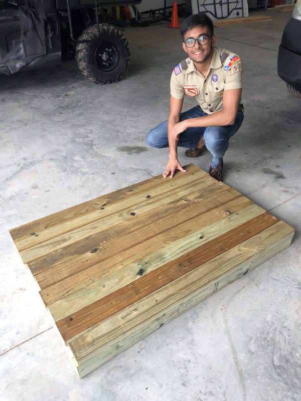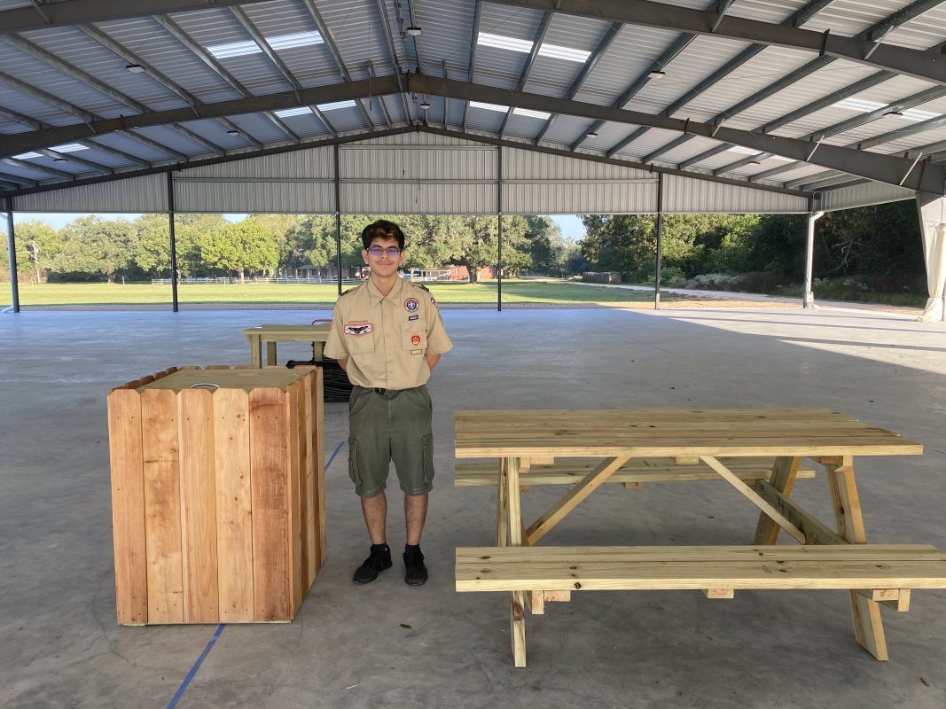 1 picnic table, 1 trashcan surround (Lorenso Longoria October 2020)